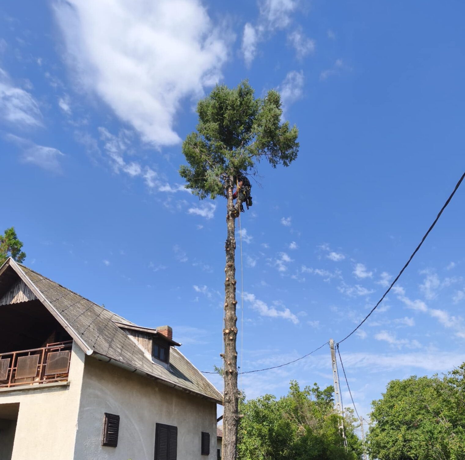 Veszélyes fa kivágás és magasban végzett munka